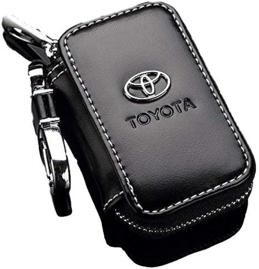 Toyota Zipper Leather Key Cover Pouch Black with Keychain Ring
