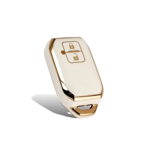 Suzuki Swift TPU Plastic Protection Key Cover White With Golden 2 Buttons - Model 2022-2023